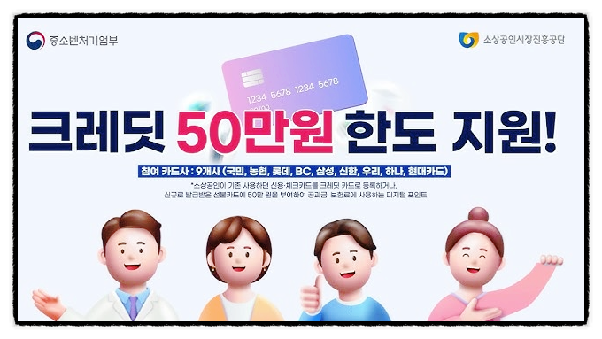 신청만 하면 최대 50만 원까지 지원되며, 현금이 아닌 카드 크레딧 형태로 지급됩니다.