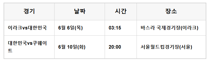 [6월 6일] 대한민국 vs 이라크 축구! 놓칠 수 없는 빅매치 생중계 정보