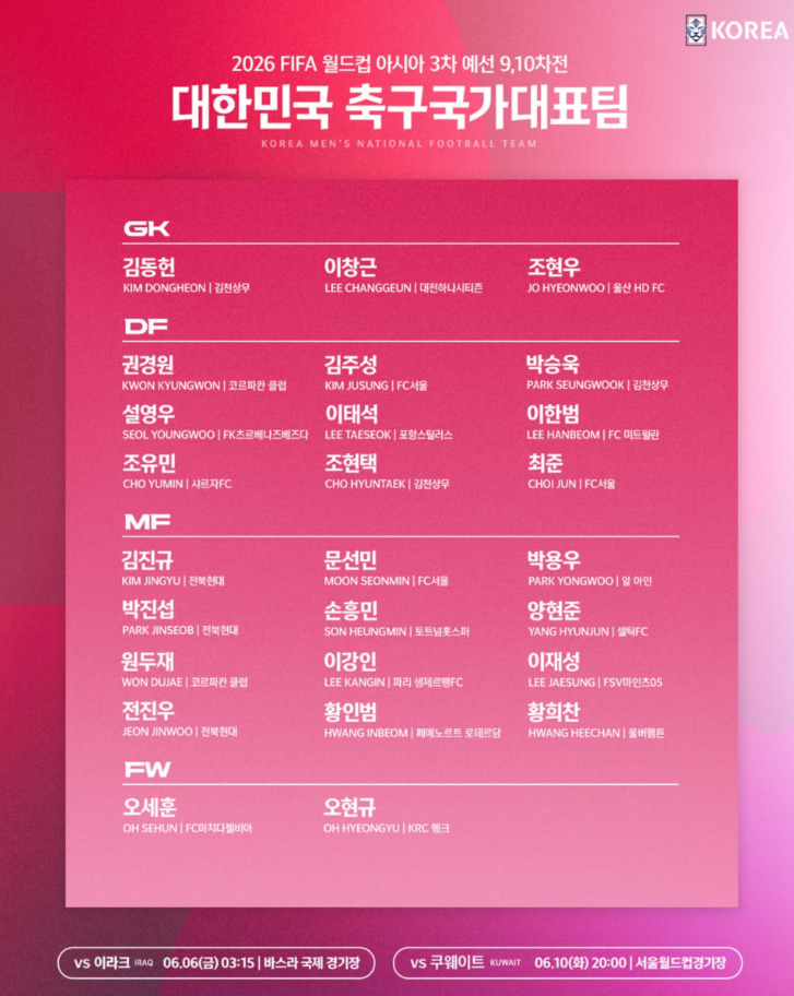 ▶ 2025년 6월 6일 대한민국과 이라크의 축구 경기에 대한 자세한 정보는 다음과 같습니다.